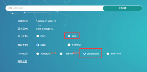 接着填写您的邮箱,选择证书类型为ECC,SCR生成选择浏览器生成,接着点击点击创建