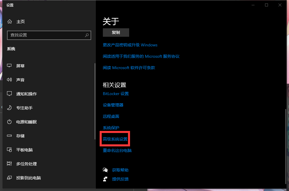 进入‘高级系统设置
