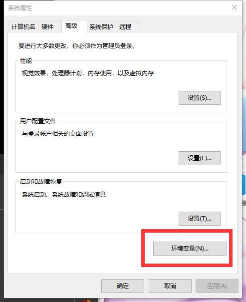 在‘高级’选项卡选择‘环境变量’