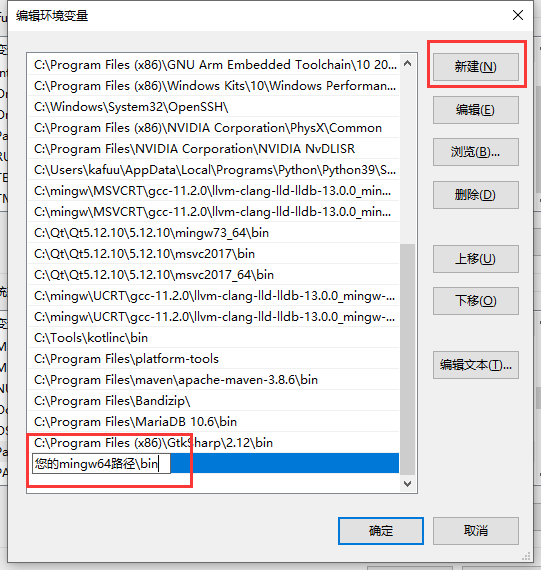 如果您的mingw64存储在C盘根目录下,则您要添加的路径为:C:\mingw64\bin