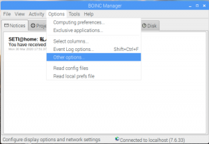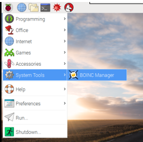 在安装好boinc客户端后,点击树莓派左上角,在System Tools中打开BOINC Manger